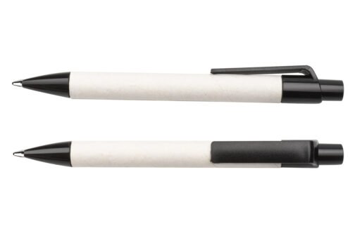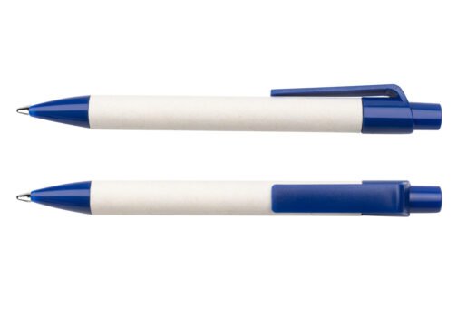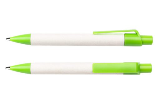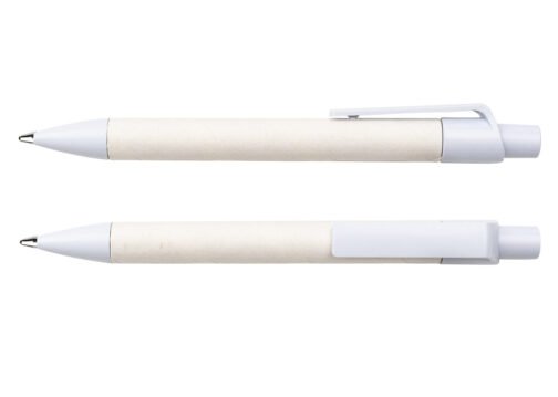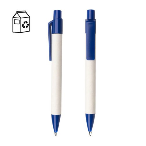 Bolígrafo elaborado en material recuperado de cajas Tetra Pak. Clip y punta plásticos. Sistema retráctil.